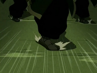 A variety of these techniques were used during the battle underneath Lake Laogai, in which the Dai Li attempted to arrest Team Avatar and the reformed Freedom Fighters.[1] In this battle, two agents swiftly ascended the walls on either side of Toph for an attack, while another agent was seen using his shoe as he would a rock glove when he kicked it toward Longshot. They later used this technique again to rapidly slide over the ground to detain the members of Team Avatar who had invaded the Royal Palace,[11] as well as to cut off Aang's charge at Azula back in the Fire Nation during the Day of Black Sun.[12]