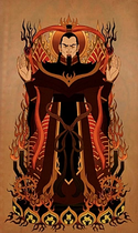 This is the official portrait of the Fire Lord preceding Taiso. He is depicted in traditional Fire Lord attire, although the robes are slightly less ornate than the robes seen during Aang's lifetime, in a darker tone with less golden details.[3]