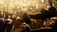 However, his behavior was not completely an act. During the Equalists' assembly, he still grinned, strained against his captors, and acted strong to raise the morale of the other desperate benders, proving to have a strong will despite the hopeless situation. This action also reflected the fact that while he was too proud to show weakness, he also had a close relationship with his fellow triad members. This was also evidenced by his hateful look toward Amon when the Equalist leader took Zolt's bending.[2]