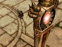 The sunstone is a small, red, and transparent gemstone found in the Fire Nation, serving various purposes. When the Sun Warriors built the locked room in their temple, they incorporated a celestial calendar on the floor outside. Above the door of the locked room, they placed a sunstone, while a pillar with another stone at its top was positioned opposite. The stones were carefully aligned so that, on the afternoon of the winter solstice, sunlight would pass through the sunstone on the pillar and strike the sunstone on the door, triggering the door to open.[1]