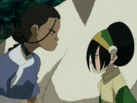 Another fight breaks out between Katara and Toph, but when Toph blames Appa's shedding for their predicament, an angered Aang joins the fight and berates Toph for blaming Appa. Aggravated by Aang's infuriated objections to her argument, Toph gives up and decides to leave, ignoring Sokka. However, in the distance, Azula's machine picks up speed, having already seen Appa's fur floating through the air. Desperate over Toph's disappearance, Aang laments dejectedly that he cannot believe he yelled at his earthbending teacher, a feeling Katara sympathizes with as she sadly notes that she had been mean to Toph. Sokka is of little comfort, simply affirming that they were jerks.