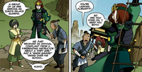 • When Sokka doubts his ability to stop an entire army on page 30, Toph states that she, Sokka, and Suki stopped an entire air fleet, referring "Sozin's Comet, Part 4: Avatar Aang" when they successfully stopped Ozai's fleet of airships.