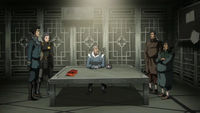 Mako attempts to convince Lin Beifong, Lu, and Gang that the Northern Water Tribe might not be responsible for all the attacks.