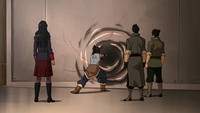 - Korra employs a style of earthbending used by both Toph and Aang while trying to pry open the metal wall, by flicking her wrists inward rather than with a full fist.