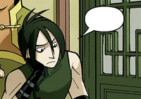 When Toph visited Liling's house, she quickly realized that Yaling and her sister Ru were responsible for the explosion at Earthen Fire Industries, as her seismic sense allowed her to distinguish between different people's footsteps. While trying to follow the lead she had on Yaling, Toph asked Yaling if she would like to learn metalbending from her. After one brief lesson, Toph began to downplay her friendship with Aang and displayed a false sense of sympathy for benders who had a negative impression of nonbenders. By leading Yaling along, Toph was able to coax her into revealing a secret rally due to be held that evening. Toph's deception was revealed when she tried to arrest Liling at the rally, and Yaling and Toph began to fight. Although Team Avatar had the upper hand, Yaling managed to escape.[43] Toph and Yaling later fought in Cranefish Town's final stand against Liling's bender supremacists, and although Yaling managed to knock Toph off her feet, the other earthbender was soon defeated thanks to Sokka's help, with Yaling subsequently being imprisoned.[44]