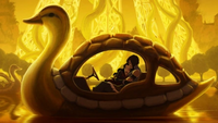 Several years later, after he had returned to the Fire Nation, Zuko revisited the same pond to feed the small creatures like before. However, when Azula arrived to speak with him, the turtle ducks swam away hastily, disturbed by her presence.[6]