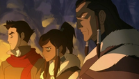 As Korra reappeared after having opened the portal, Unalaq congratulated her upon having taken the first step to restore balance to the South, as well as the whole world. When the group returned to the Southern Water Tribe, they found the Northern Water Tribe naval force docking in the ports outside the city. Unalaq explained that opening the portal was just the first step to get the South back on the righteous path, and more work needed to be done before the two tribes were truly reunited again.[9]
