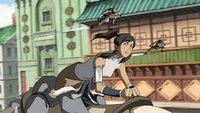 • When the Triple Threat Triad is threatening Mr. Chung, Korra is not standing behind them. However, when she starts talking and they turn around, she is standing behind them.