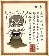 Calligraphy is a form of art where one draws or paints characters in a, particularly artistic way to emphasize its beauty and shape. The paper, ink, brush, and inkstone are essential implements in calligraphy. A paperweight is also used to keep the paper straight and flat on the table, negating the need for one's hand to touch the clean paper. Only the highest quality types are used. Piandao taught Sokka its basics.[2] Some methods, like the Pianhai method, a ceremonial calligraphy setup, takes a great deal of formal training, which usually is not learned by commoners.[3] Another method is the Duanshan style, a fairly rare but well respected style.[4]