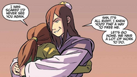 Yaling managed to take out a few more people with earthbending, and stole the keys to Liling's cage from one of the guards. She hurried inside, freeing her mother, and happily embraced her, saying she was afraid she would not see her again. Liling told her that she knew she would be able to free her, and that the two had lot of work to do back home, returning to an overjoyed Ru.