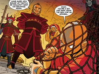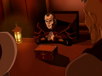 This arrogance was ultimately realized in his final act, as his refusal to accept Zuko's helping hand[1] led to his imprisonment in the Fog of Lost Souls, where he descended into madness, continuing to mutter his self-made titles and mistaking Tenzin for Aang.[6]