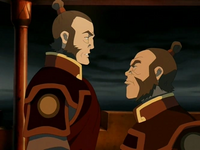In late 99 AG, Zhao was commanding Ketu Harbor,[23] a Fire Nation naval base, when Zuko docked his ship and asked for repairs to the damage caused by his battle with the Avatar. Zuko initially told Zhao that the damage was caused by crashing into an Earth Kingdom ship, but Zhao sensed that he was hiding something. He invited a reluctant Zuko and a jolly Iroh to drink tea in his office. However, he secretly had the banished prince's crew interrogated. After the questioning revealed Zuko's encounter with the Avatar, Zhao had Zuko and Iroh confined in his office. He said that the task of capturing the Avatar was too important to entrust to a teenager, and announced his own intentions to capture the Avatar himself. The ambitious commander and wayward prince began a verbal argument, which ended in Zuko challenging Zhao to an Agni Kai.[3]