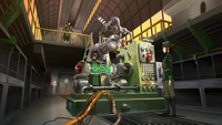 Approaching Kuvira's machine, Varrick told Zhu Li to land on the spot in the middle of the enormous suit's back, guiding her by making a comparison to a specific spot on his own back that he could never reach. The moment they touched down, Varrick started welding, though before he could inflict any serious damage, Zhu Li was forced to abort their attempt, lest they would be crushed. She continuously tried to land again, though Kuvira kept lashing out at them, preventing them from attempting another attack. Eventually, Zhu Li and Varrick's suit had a wing blown off when Kuvira fired her spirit energy cannon. Before they crashed against a building, Zhu Li flipped the ejection seat switches and she and Varrick floated off to safety with their parachutes.[4]